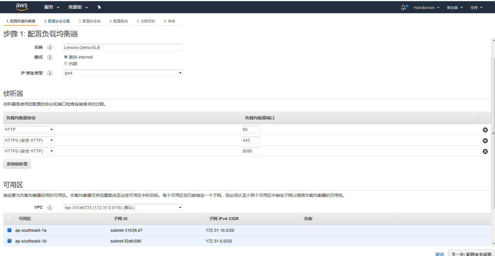 (2)配置负载均衡器(添加https协议,侦听8080端口);