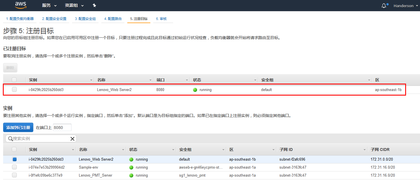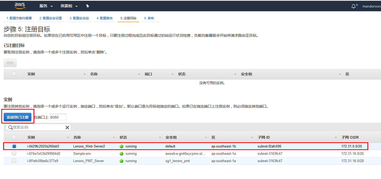 (6)注册目标,将EC2实例交给Load Balancer托管;