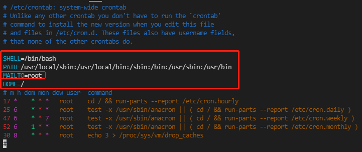 MAILTO=root #这个必须有,没有生效可能因为此未指定用户