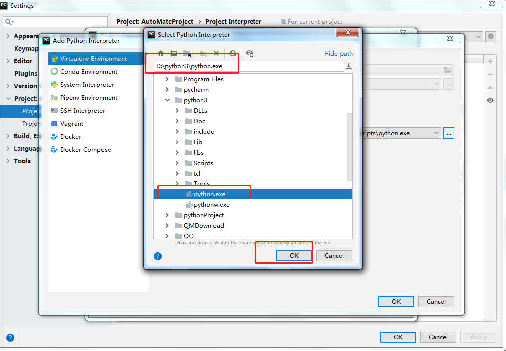 也就是说安装一个python3.7和一个pycharm,并且在setting-》Project Interpreter 添加你下载的python3 文件下python.exe可执行程序就可以了