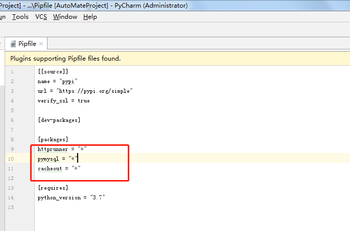 2:输入命令pipenv install,会根据pipfile文件中的字段[packages]来下载对应的依赖包