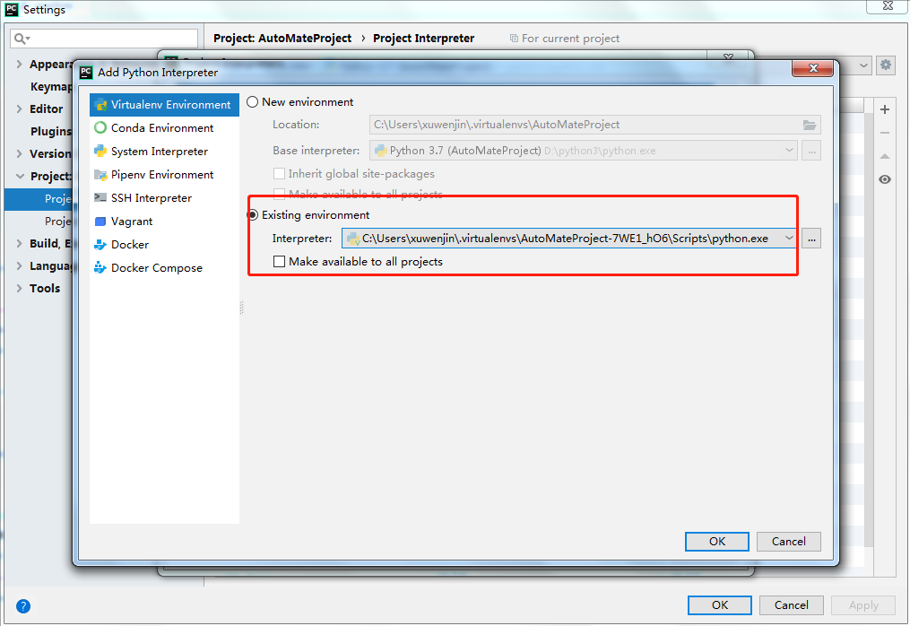 3:下载好了后去找虚拟环境,把它加载到setting配置中,下载的虚拟环境其实就是一堆文件,一般会在c盘个人用户路径下。
