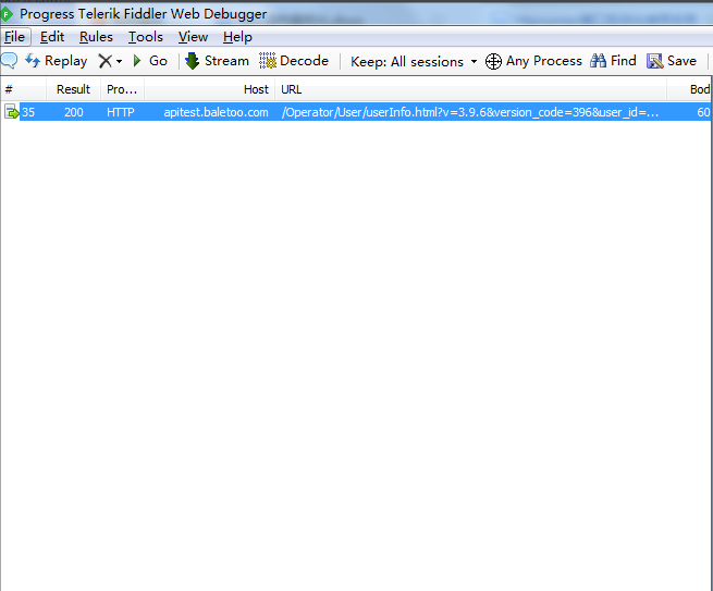 1:打开Fiddler抓取一个接口(最好没有接口依赖关系)