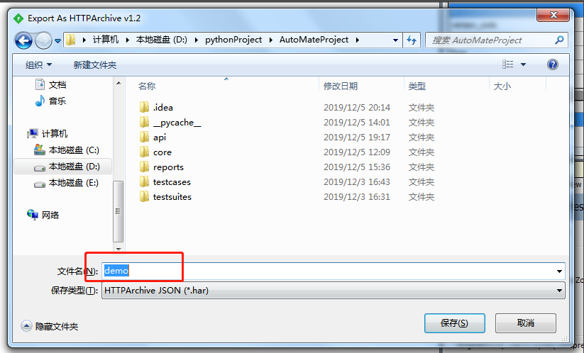 3:导出har,最好存放的位置是在自己项目里,方便查找。