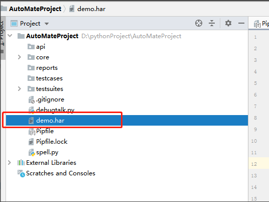 1:官方文档只有录制testcase的功能,我这边参照har2case的源码重新写了一遍,附加一个录制api的功能, 命令如下:python spell.py -a demo.har,执行后会在api文件路径生成一个demo.yaml文件