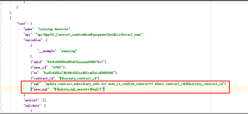 1: 这两个方法太有用了,有些场景我们录制好了测试用例运行一次就结束了,再想运行的话就会报错。例如我们的项目签署协议一块,我们签署一次就结束了,一般开发逻辑可能是签署成功后把某个字段置为例如1,我们想再次运行这个测试用例就必须提前把这个字段update置为0,其实就是在运行测试用例之前我们调用执行下sql,setup_hook或者 teardown_hook就是用来专门干这种事的,其意思是每个 teststep之前触发setup_hook函数(用于准备工作),每个teststep之后触发teardown_hook函数(用于测试后的清理工作),目前我能想象到就这个场景。