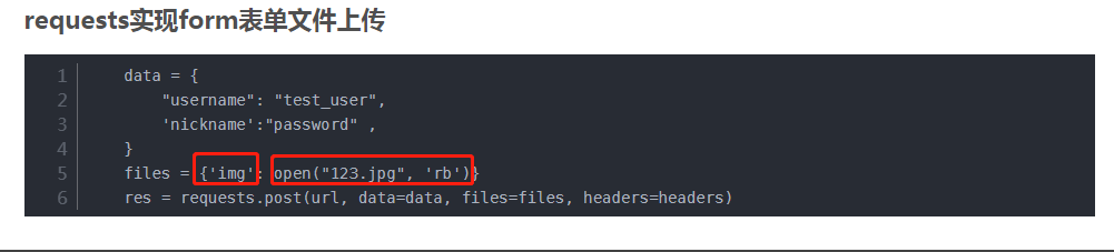 这个文件传参格式也是固定的。这个格式是requests请求的一个传参格式,如图