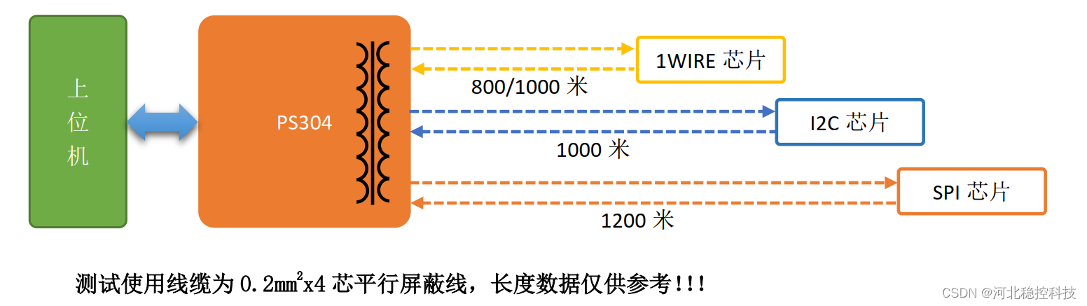 PS304 有 4 个通道的 1Wire 接口,每个接口上可同时连接多个 1Wire 芯片(或设备)。具有 64 位 ID 搜索功能;具有远距离线路的自适应功能。