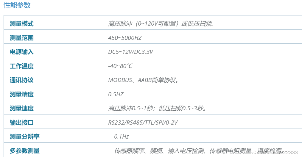 多参数测量:传感器频率、频模、输入电压检测、传感器电阻测量、温度检测。