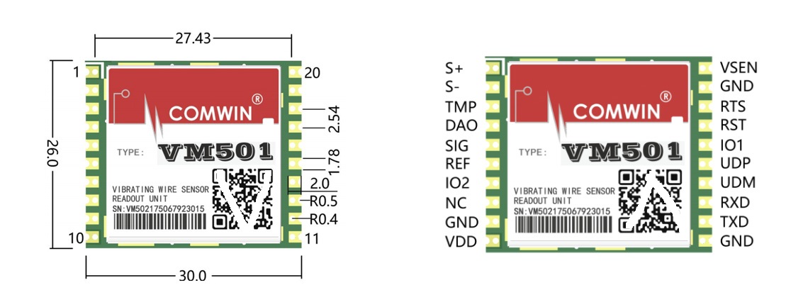 VM501系列模块是单振弦式传感器激励、 频率读取、 温度转换的专业化读数模块,具有集成度高、 体积小、精度高、适应能力强、极少的外围电路设计等突出特性,具有多种激励方法、传感器接入检测、可编程激励电压、信号幅值检测和信号质量评定等先进功能。