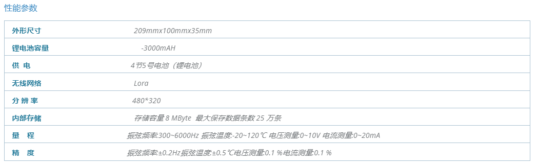 量 程振弦频率:300~6000Hz 振弦温度:-20~120℃ 电压测量:0~10V 电流测量:0~20mA