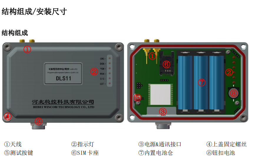 DLS11 是为 VSxxx 系列采发仪研发的内置电池以及 LoRA、LTE(4G)无线的低功耗数据转发器。利用“实时在线”的 LoRA 收发器收集其它 LoRA 设备发送的数据并存储,定时启动将这些 存储的数据重新打包为标准的数据包经由 LTE 网络发送致远端服务器,数据发送方式有短信、TCP、邮件、FTP 等。DLS11 实 现了 VSxxx 设备的现场组网,使用一张 SIM 卡即可实现多台 VSxxx 设备的数据远传功能。