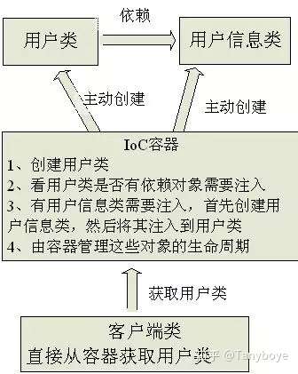 ●谁依赖于谁:当然是某个容器管理对象依赖于IoC容器;“被注入对象的对象”依赖于“依赖对象”;