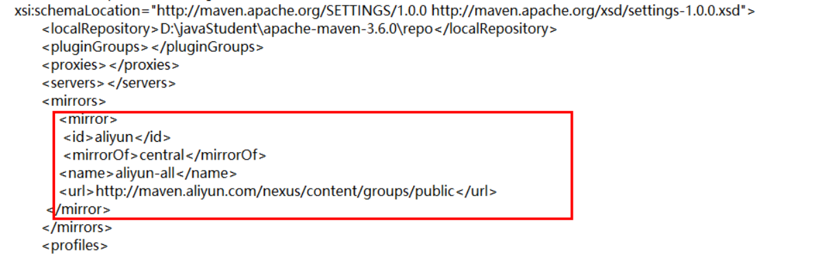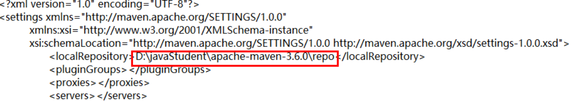 D:\javaStudent\apache-maven-3.6.0-->conf-->打开settings.xml-》