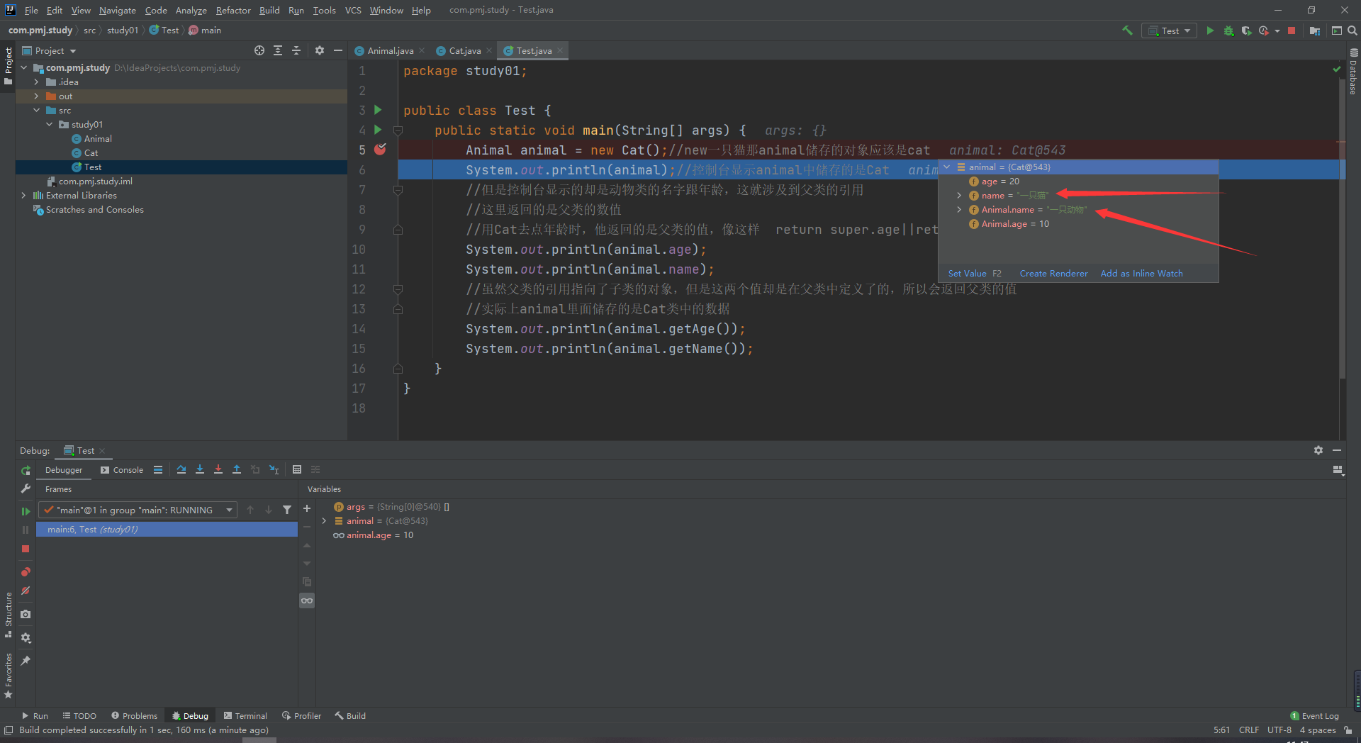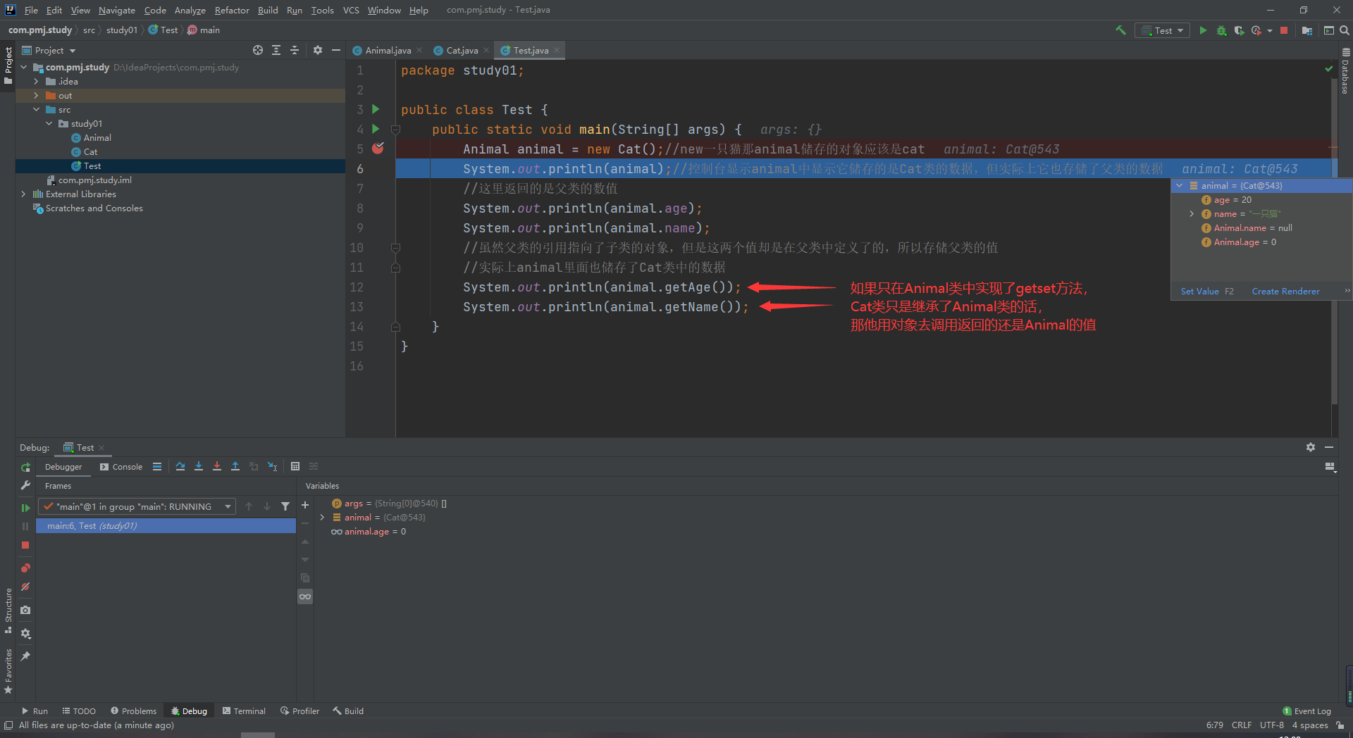 5.当父类中不包含子类的属性时,该对象只能调用父类的属性,无法使用该对象去调用子类的属性。