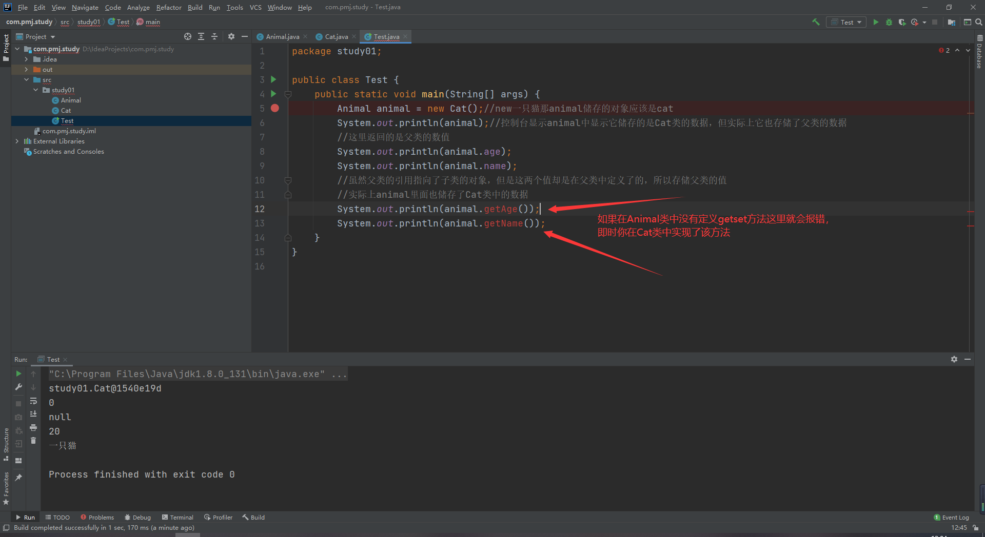 4.当父类中不包含子类的方法时,该对象只能调用父类的方法,无法使用该对象去调用子类的方法。