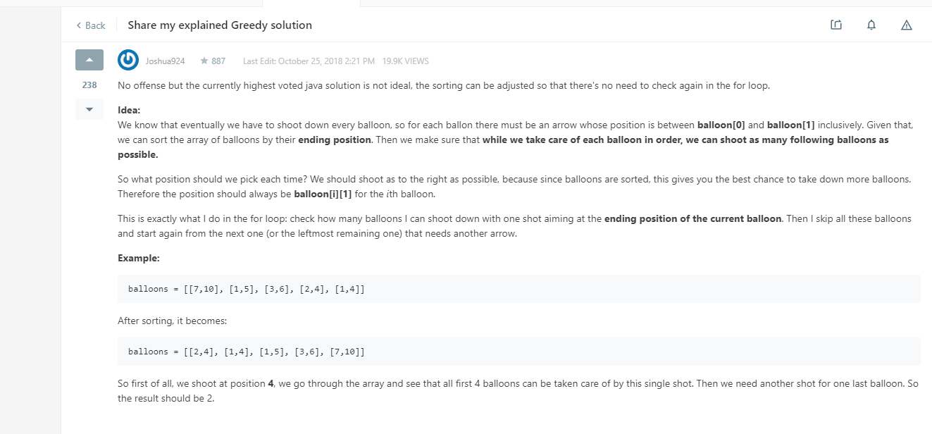 仔细一看,就像是merge inteval里面的merge情况,e ≥ start就可以合并,这里我们合并就是可以用一个arrow射爆,那么第一个【s,e】可以合并三个,然后更新【s,e】继续往下