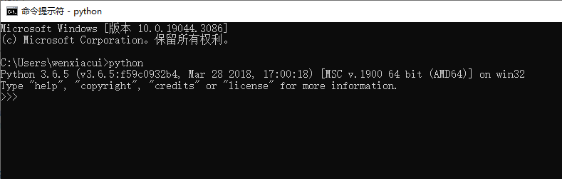 运行cmd命令,输入python出现>>>,即进行了交互模式