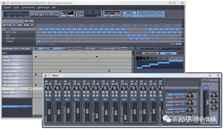 Hydrogen Music基于QT开发,其UI界面非常友好和直观。是一款优秀的音频音序器和混音器。