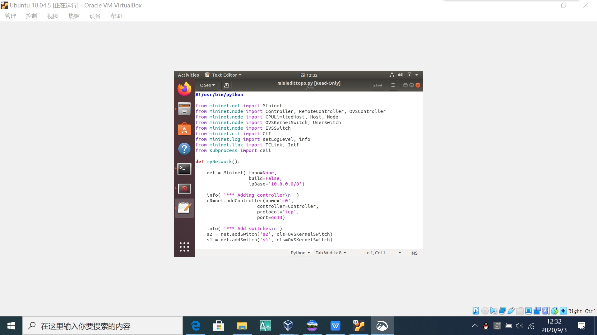 实验 1:Mininet 源码安装和可视化拓扑工具
