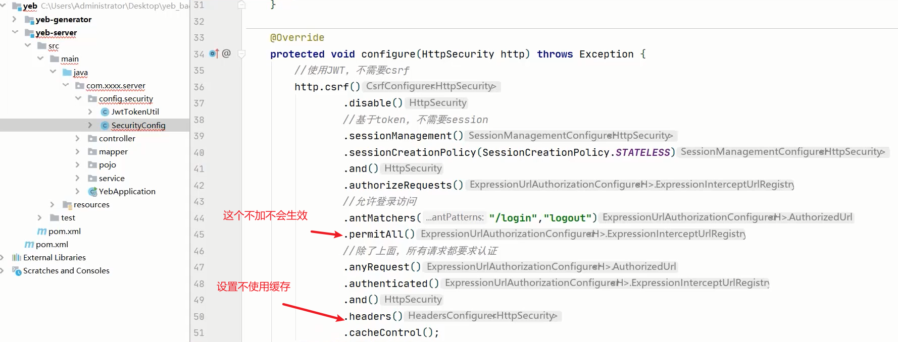 再下面就是springcurity完成的配置了,先找到入参是HttpSecurity的configure然后进行重写。