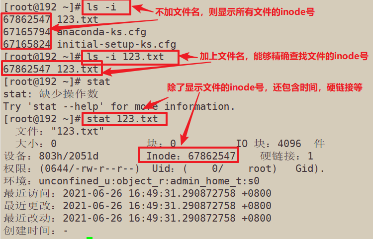 - 移动文件或重命名文件,只是改变文件名,不影响inode 号,但是复制的话,会生成一个新的inode号