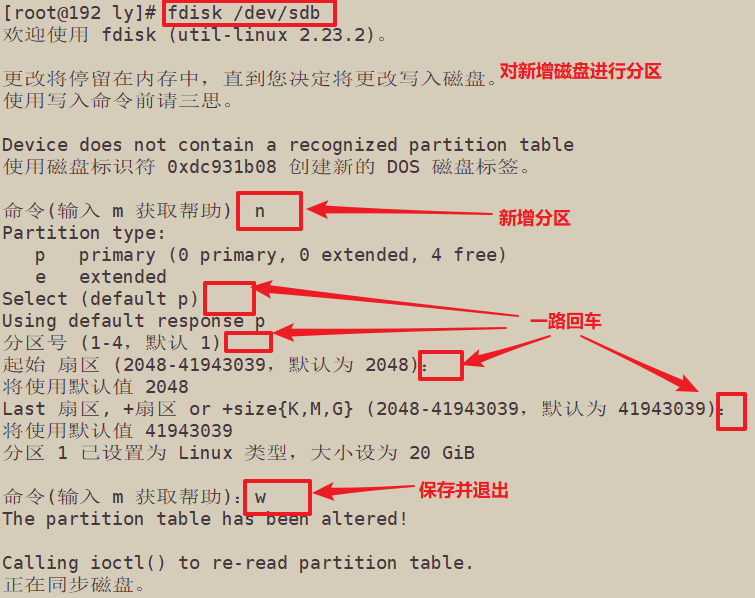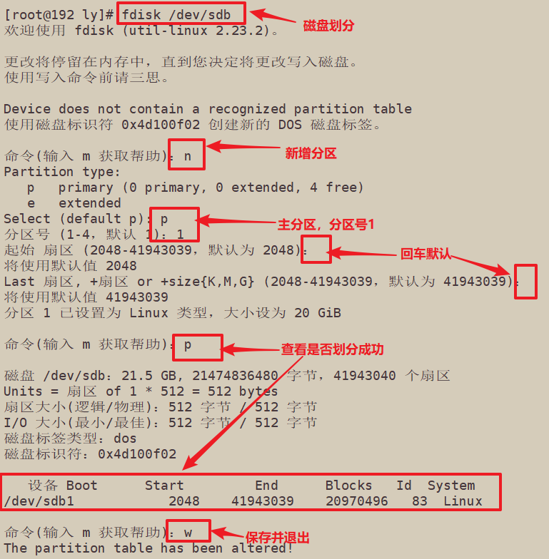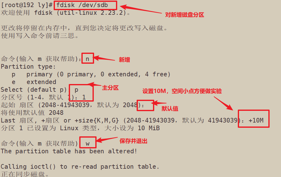 #使用fdisk创建分区/dev/sdb1,分区大小10M即可