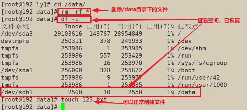 - 文件名包含特殊字符,可能无法正常删除。这时直接删除inode,能够起到删除文件的作用;