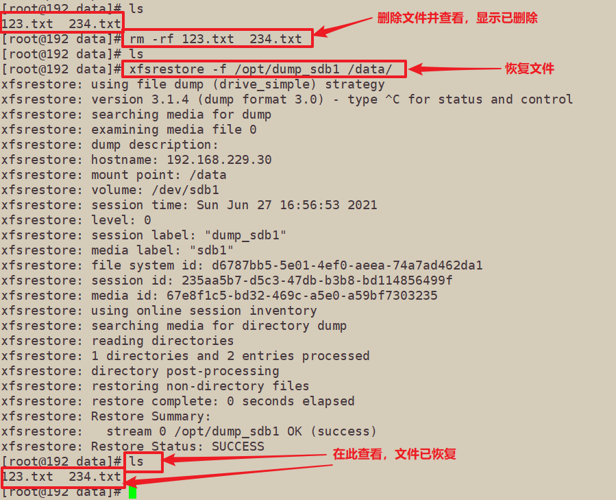 xfsrestore -f /opt/dump_ sdb1 /data/