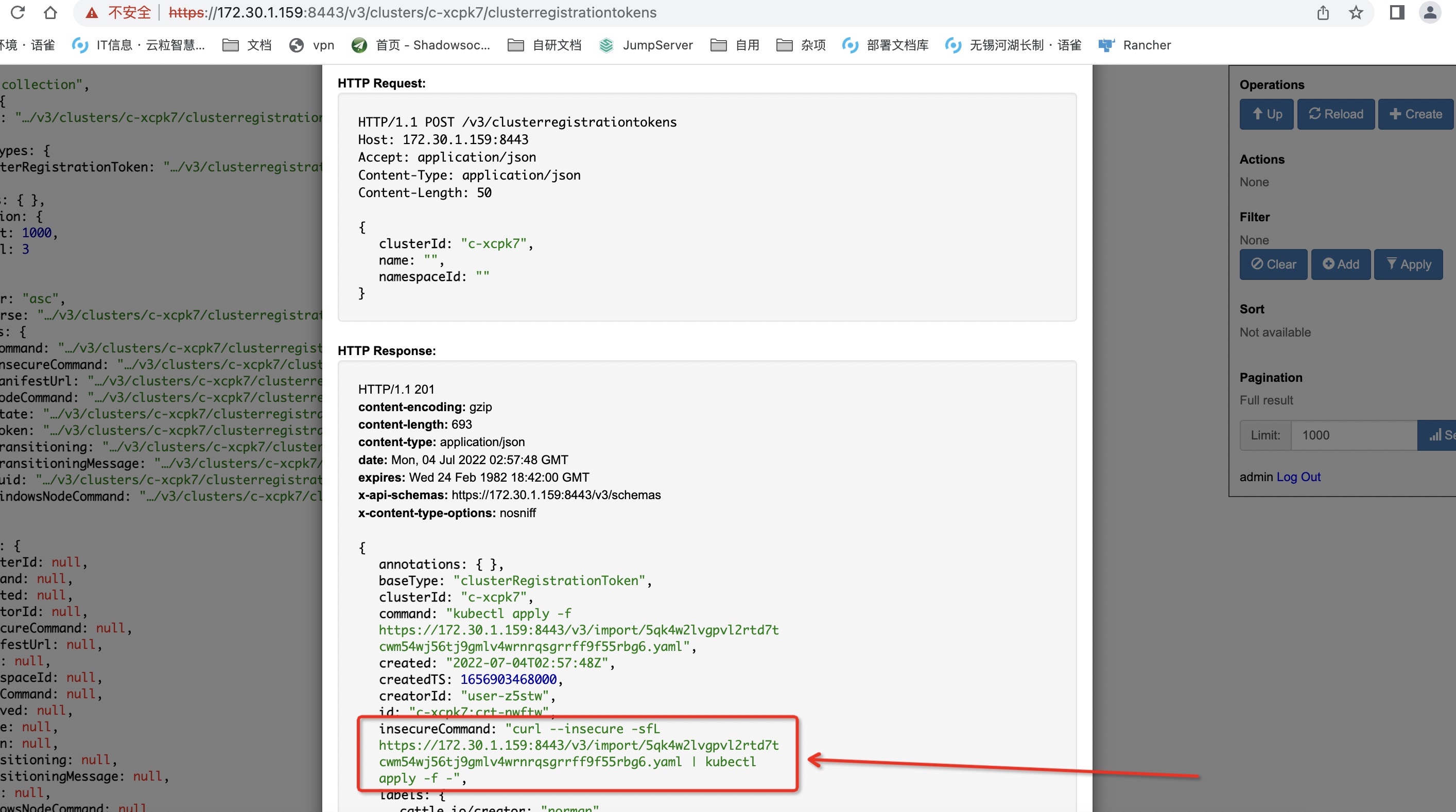 curl --insecure -sfL https://172.30.1.159:8443/v3/import/5qk4w2lvgpvl2rtd7tcwm54wj56tj9gmlv4wrnrqsgrrff9f55rbg6.yaml | kubectl apply -f -