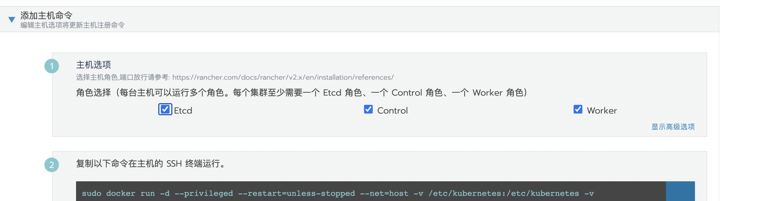 第二部.点击编辑集群,在master原节点执行生成的命令,添加主机页面添加3个master主机,和node主机