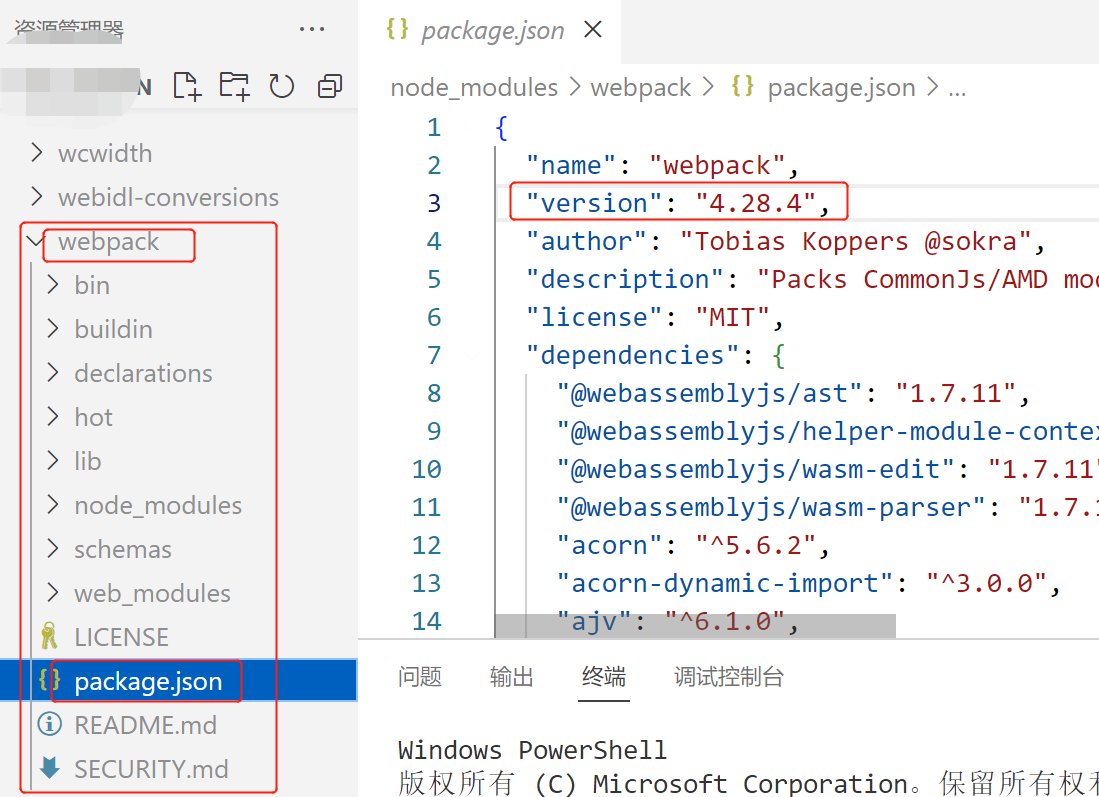 在node_modules → 找到webpack → package.json
