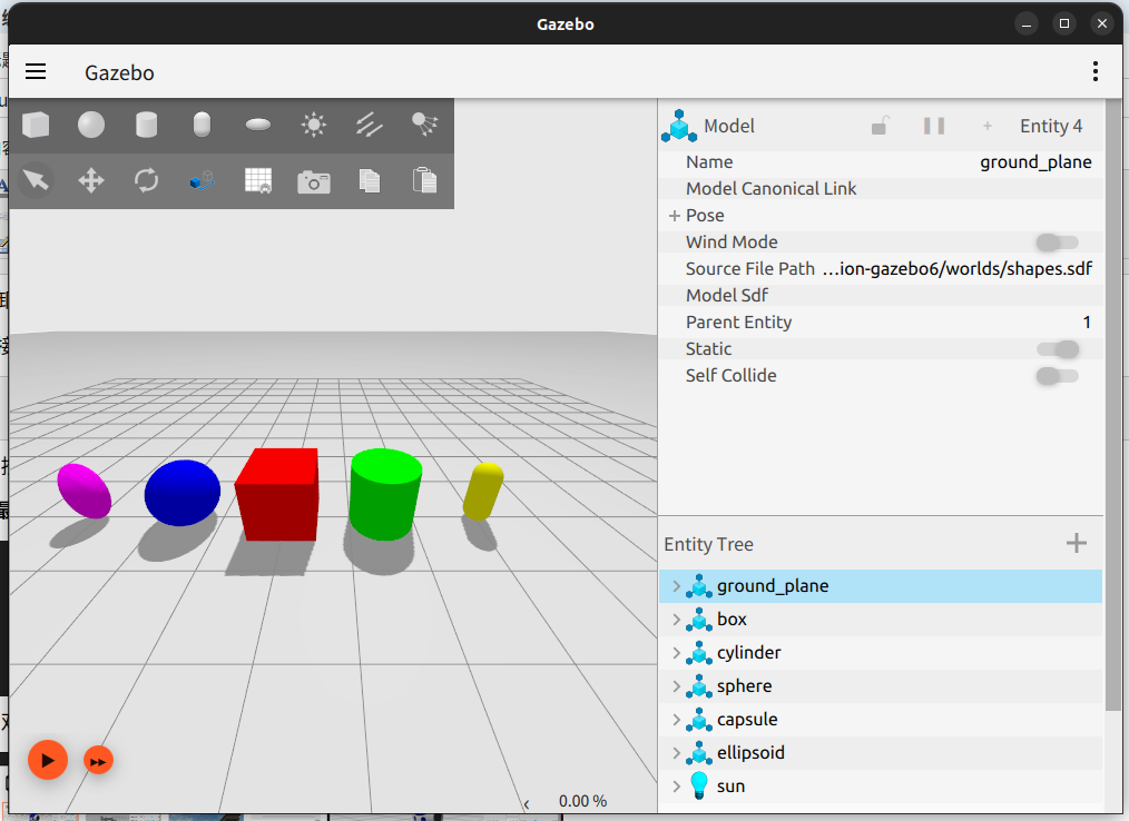 ign gazebo shapes.sdf
