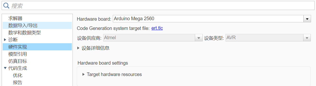 硬件:Arduino Mega 2560(可以通过更改模型配置参数对话框中的“硬件板”参数,在“支持硬件”部分列出的任何板上运行)