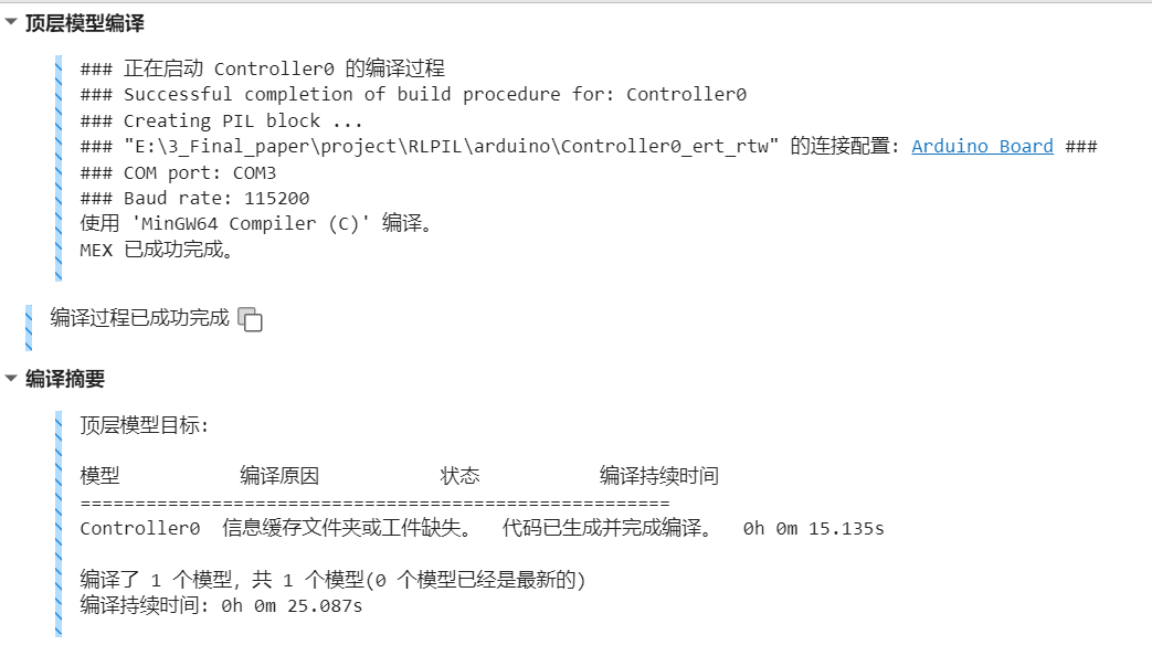 4. 编译后弹出封装后的PIL仿真文件,将 PIL 块复制并放置在 Arduino PIL 块模型中的“放置 PIL 块于此”容器中。
