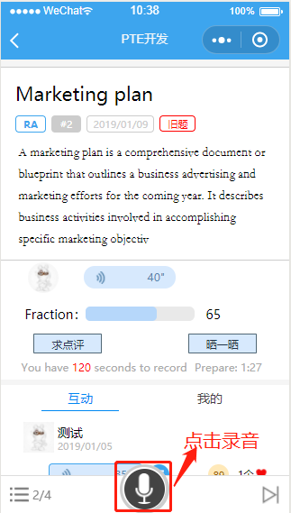 1 Page({ 2 data: { 3 openRecordingdis: "block",//录音图片的不同 4 shutRecordingdis: "none",//录音图片的不同 5 recordingTimeqwe:0,//录音计时 6 setInter:""//录音名称 7 }, 8 9 //录音计时器 10 recordingTimer:function(){ 11 var that = this; 12 //将计时器赋值给setInter 13 that.data.setInter = setInterval( 14 function () { 15 var time = that.data.recordingTimeqwe + 1; 16 that.setData({ 17 recordingTimeqwe: time 18 }) 19 } 20 , 1000); 21 }, 22 23 24 //开始录音 25 openRecording: function() { 26 var that = this; 27 wx.getSystemInfo({ 28 success: function(res) { 29 that.setData({ 30 shutRecordingdis: "block", 31 openRecordingdis: "none" 32 }) 33 } 34 }) 35 const options = { 36 duration: 60000, //指定录音的时长,单位 ms,最大为10分钟(600000),默认为1分钟(60000) 37 sampleRate: 16000, //采样率 38 numberOfChannels: 1, //录音通道数 39 encodeBitRate: 96000, //编码码率 40 format: 'mp3', //音频格式,有效值 aac/mp3 41 frameSize: 50, //指定帧大小,单位 KB 42 } 43 //开始录音计时 44 that.recordingTimer(); 45 //开始录音 46 recorderManager.start(options); 47 recorderManager.onStart(() => { 48 console.log('。。。开始录音。。。') 49 }); 50 //错误回调 51 recorderManager.onError((res) => { 52 console.log(res); 53 }) 54 }, 55 56 //结束录音 57 shutRecording: function() { 58 var that = this; 59 wx.getSystemInfo({ 60 success: function(res) { 61 that.setData({ 62 shutRecordingdis: "none", 63 openRecordingdis: "block" 64 }) 65 } 66 }) 67 recorderManager.stop(); 68 recorderManager.onStop((res) => { 69 console.log('。。停止录音。。', res.tempFilePath) 70 const {tempFilePath} = res; 71 //结束录音计时 72 clearInterval(that.data.setInter); 73 //上传录音 74 wx.uploadFile({ 75 url: appURL + '/wx_SubjectInformation/wx_SubjectRecordKeeping.do',//这是你自己后台的连接 76 filePath: tempFilePath, 77 name:"file",//后台要绑定的名称 78 header: { 79 "Content-Type": "multipart/form-data" 80 }, 81 //参数绑定 82 formData:{ 83 recordingtime: that.data.recordingTimeqwe, 84 topicid: that.data.topicid, 85 userid:1, 86 praisepoints:0 87 }, 88 success:function(ress){ 89 console.log(res); 90 wx.showToast({ 91 title: '保存完成', 92 icon:'success', 93 duration:2000 94 }) 95 }, 96 fail: function(ress){ 97 console.log("。。录音保存失败。。"); 98 } 99 }) 100 }) 101 }, 102 103 //录音播放 104 recordingAndPlaying: function(eve) { 105 wx.playBackgroundAudio({ 106 //播放地址 107 dataUrl: '' + eve.currentTarget.dataset.gid + '' 108 }) 109 }, 110 111 })