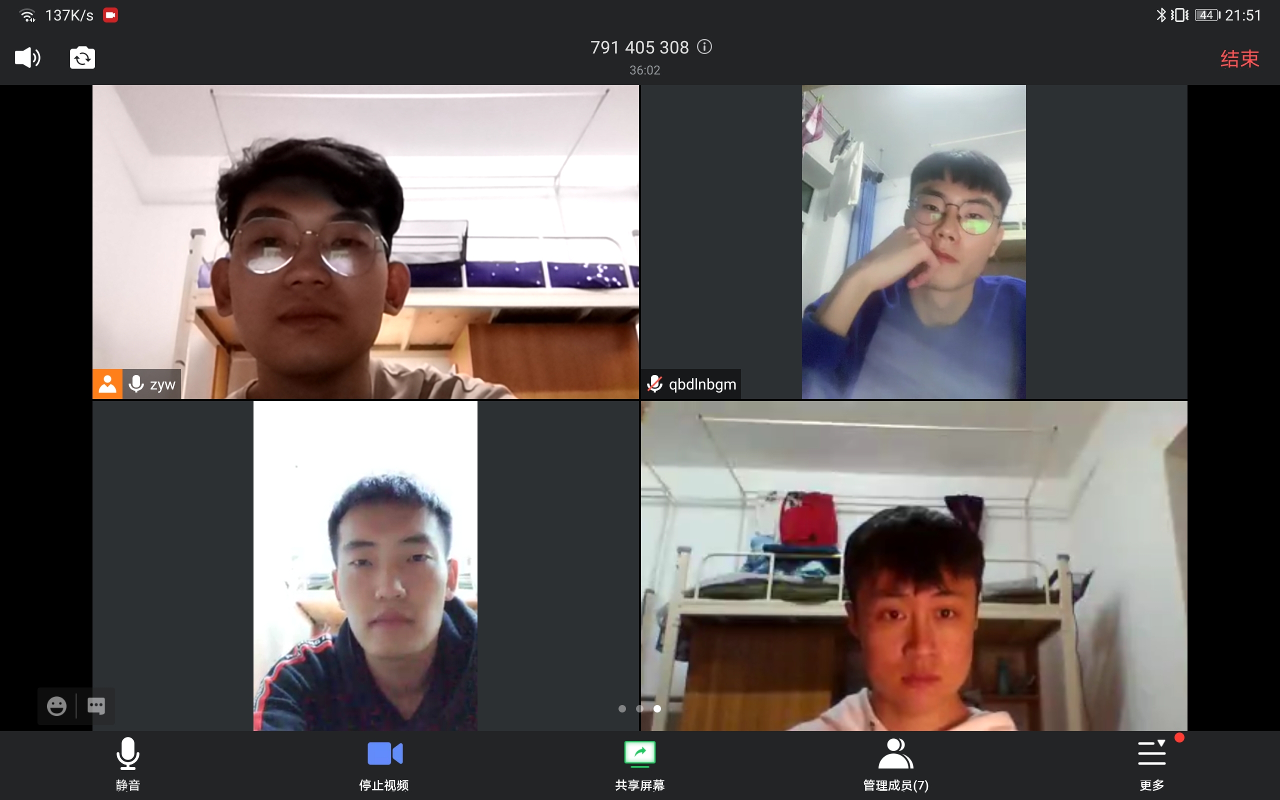 由于疫情,可以远程会议,要求远程会议的截图中能看到所有组员。