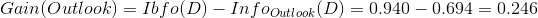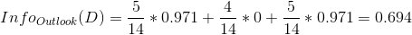 步骤2:遍历每种属性的每种分割方式,先看Outlook属性,它有三种取值Sunny, Rainy, Overcast,