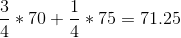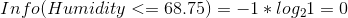 因为65只有一个,70有3个,所以分别乘以1/4和3/4,然后在计算按68.75来分裂的信息熵: