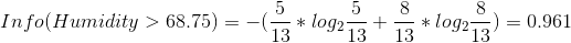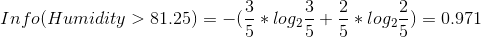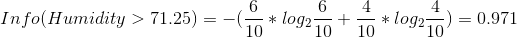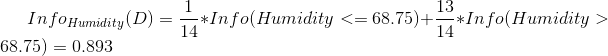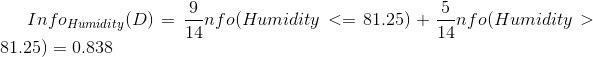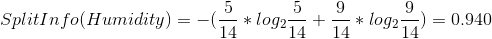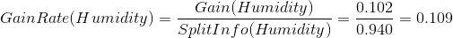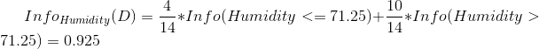 接下来计算Humidity的信息增益率。因为Humidity为连续型的属性,故其计算方法相对于离散型的属性计算会复杂很多。