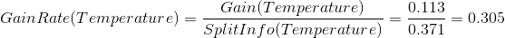 是为了防止连续型属性每个取值都对应了一个样本,这样的分裂信息熵就最大了。对于分裂点81.25,其对应的信息增益率的计算如下:
