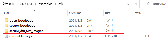 把生成的dfu_public_key.c替换掉SDK\examples\dfu文件夹下面的同名文件。