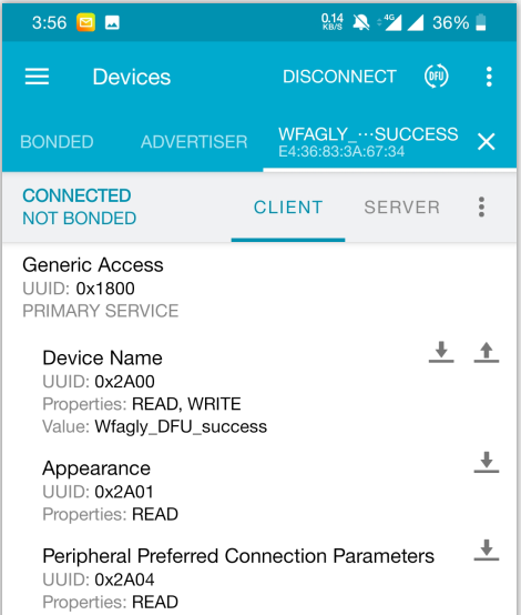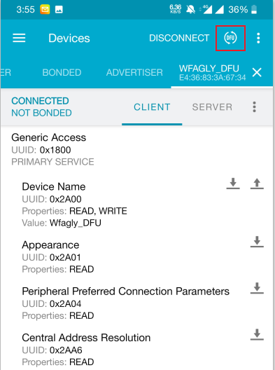 选择DFU升级按钮,或者在DFU服务中发送升级请求。