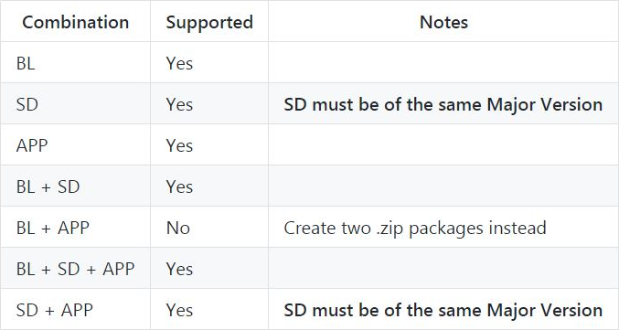 根据上图官方的信息,好像只有BL+APP不能同时升级,其他好像都可以,根据自己需求选择即可,不过大多数开发只需要升级APP就可以。