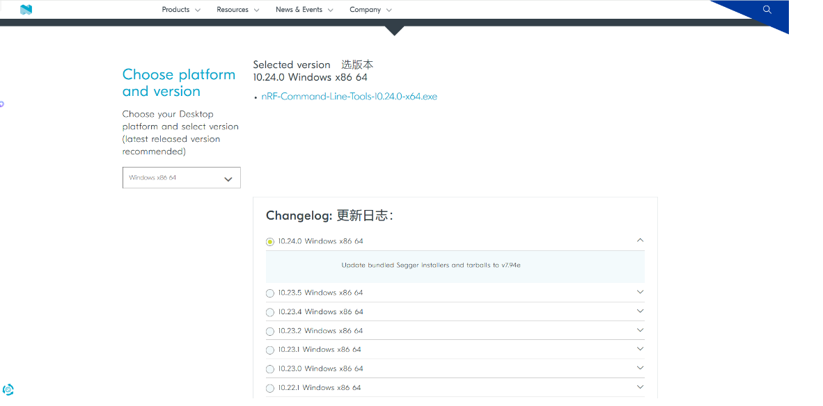 下载链接为:https://www.nordicsemi.com/Software-and-Tools/Development-Tools/nRF-Command-Line-Tools/Download#infotabs,选择自己的平台以及需要的版本: