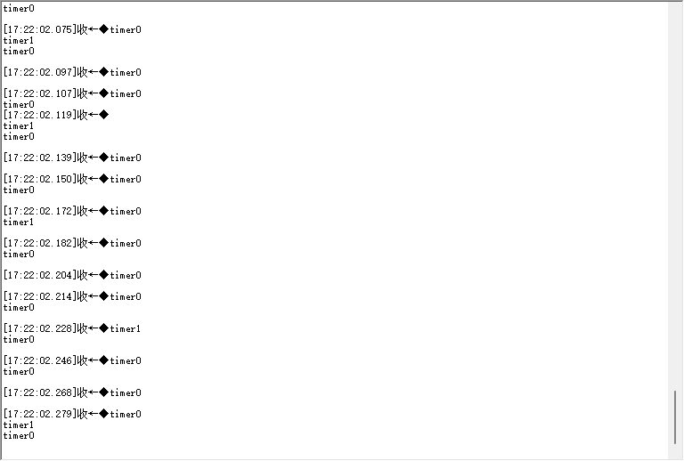 程序中设置的时间是timer0——10ms,timer1——50ms.可以看出是有效的运行5个timer0和1个timer1的。