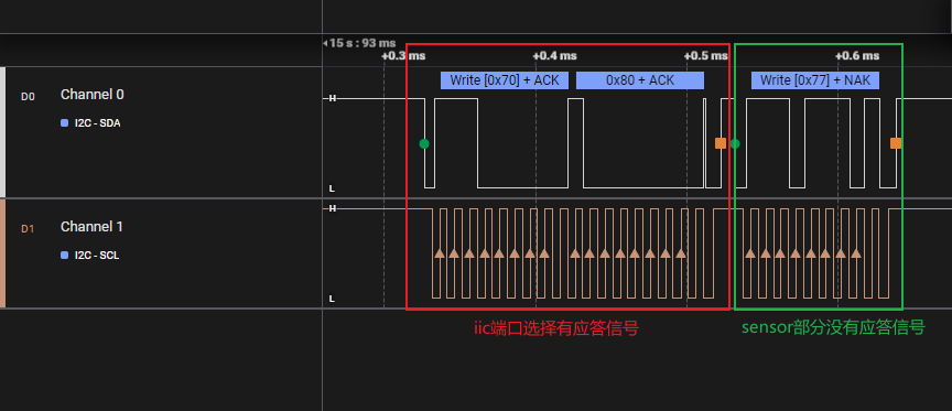 首先是硬件有没有问题,包括传感器虚焊、地址选择口有没有添加这些。先检查硬件是否连接正常,保证能有信号给到从机。再者,软件的问题,包括iic控制是否正常、传感器地址是否正确、速率匹配问题、是否符合iic协议等等。
