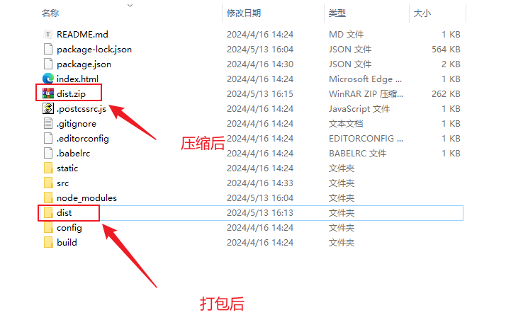 四、压缩打包后的文件,压缩后的zip文件就是打包好的文件