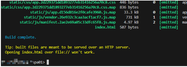 定义了 “build” 脚本后,再次执行 npm run build 命令就可以正常执行构建过程,不再报错
