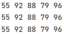 #列表遍历 lst = [55,92,88,79,96] #遍历方式:使用while + 索引 i = 0 while i < len(lst): print(lst[i],end = ' ') i += 1 print() #遍历方式2:使用for + 索引 for i in range(len(lst)): print(lst[i],end = ' ') print() #遍历方式3:使用for...in for i in lst: print(i ,end = ' ') print()